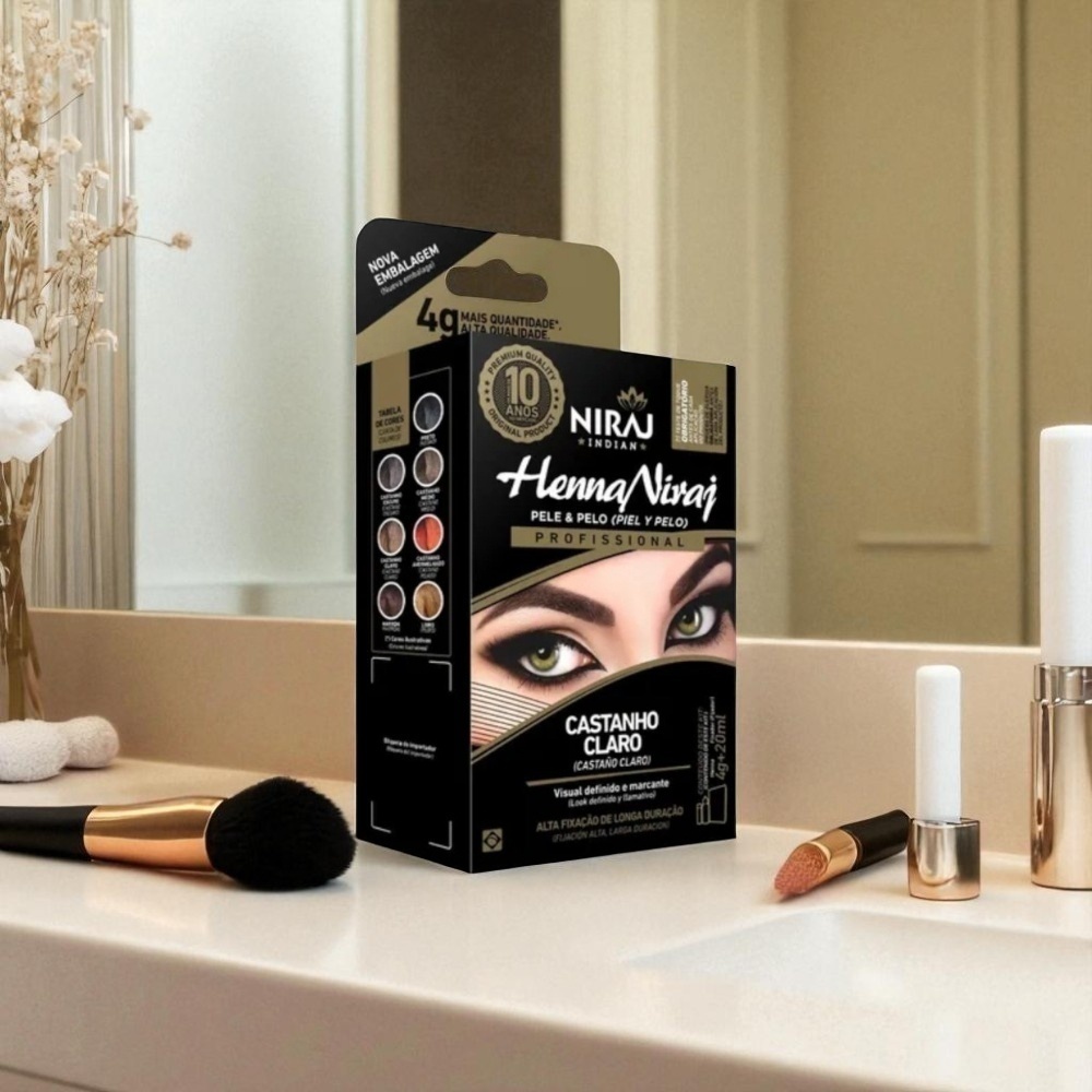 Elaborada com ingredientes naturais de origem indiana, a Henna Niraj é indicada para realce de sobrancelhas, correção de falhas e definição do olhar. Pode ser usada também em pelos faciais para cobertura leve e harmônica.